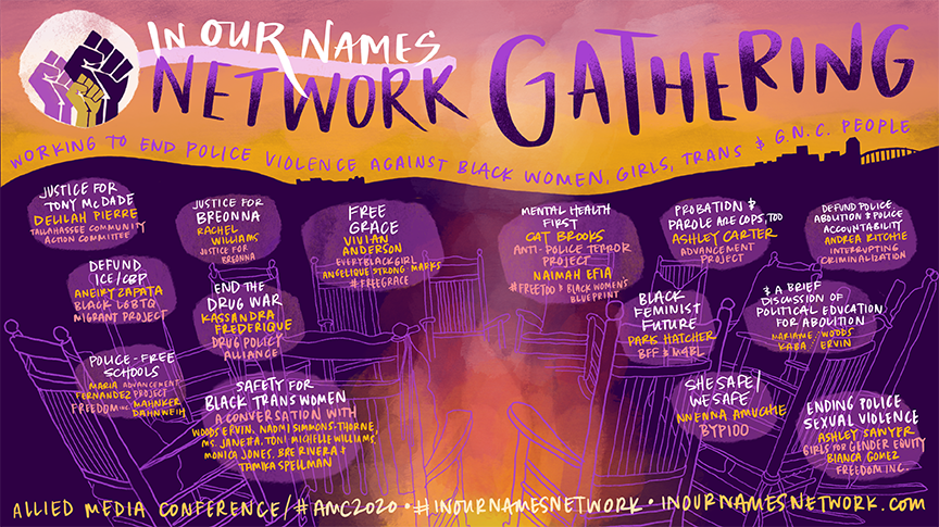 This summer’s In Our Names Network gathering reinforced the need for and our collective commitment to our campaigns to end police sexual violence and build #PoliceFreeSchools, create safety for Black trans women from community and state violence, and build responses to unmet mental health needs that don’t put people at risk of police or medical violence or coercion – and situated them within larger demands to #DefundPolice and demand justice for #BreonnaTaylor sparked and fueled by the 2020 uprising against police violence. Learn more about the work of our members across the country through one of our workshop offerings – please reach out to our new Network Coordinator Lauren Williams-Batiste with any questions or for more information!